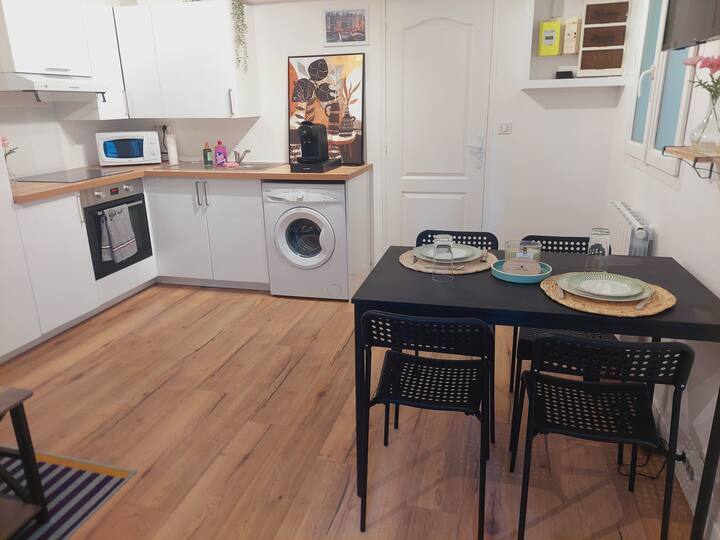 Studio charmant avec terrasse à Rouen. Idéal pour un séjour détente ou pro, dans un cadre calme. Cuisine spacieuse, salle de bains moderne, connexion Wi-Fi performante. Parfait pour se poser, que ce soit pour travailler ou se reposer.